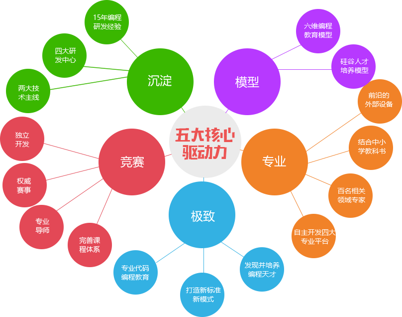 人人编程整合华为、腾讯、百度、Oracle(甲骨文)、微软、Unity、中电普华等国际知名IT企业资源,在郑州、深圳、西安、加拿大投资建设四大研发中心,拥有自主开发设计、独立知识产权的NEO图形化编程引擎、MES代码编程引擎、CAP在线编程学习创作发布平台、INC信息学竞赛技术服务四大专业平台。